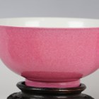 A Chinese pink glazed porcelain bowl, mark of Guangxu and possibly of the period, of steep-sided circular form with slightly flared rim, underglaze blue six-character mark to base, height 7.5cm, diameter 16.2cm, with carved wood stand, together with a similar pink glazed porcelain saucer dish, iron red mark of Guangxu to base, diameter 19.9cm.