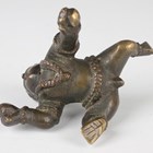 A South Indian brown patinated bronze figure of Balakrishna, 19th century, modelled as Krishna as a crawling infant carrying a butterball, height 5.8cm, together with an Indian bronze figure of a farmer and ox, length 9.2cm.
