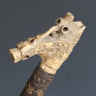 An early 20th century Dayak mandau with curved hatchet-section blade, blade length 43cm, and typical carved bone handle with woven grip, with carved wood and woven bamboo scabbard, together with an early 20th century Middle Eastern jambiya.