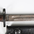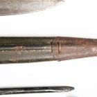 A 1907 pattern bayonet with fullered blade, blade length 43.5cm, with steel mounted leather scabbard, the pommel detailed 'R.A.F. I.E. 2347', together with a British 1913 pattern Remington bayonet, blade length 43cm, with steel mounted leather scabbard, and two post-war spike bayonets.