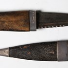 An early 20th century Sottish boy's skene-dhu with single-edged fullered blade, blade length 8cm, carved basketweave grip with silver stud decoration and silver collar and pommel piece, Edinburgh 1909 by William Buchanan Taylor, with silver-mounted leather sheath.