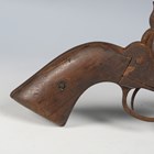 A Colt Navy revolver, third model, numbered '102026', barrel length 14.5cm (overall distressed relic condition), together with a 19th century percussion pistol, barrel length 7.5cm (action defective, damage and losses).