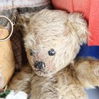 A Gabrielle Designs Aunt Lucy Bear, two Paddington Bears wearing red duffle coats, a Gardening Bear and a Big Softies bear 'Tilly'.