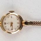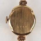 A Tudor 18ct gold cased lady's wristwatch, the signed circular dial with dot and baton hour markers and Arabic numeral at 12 o'clock, the case interior detailed '18K 0, 750' and numbered '287756', case width 1.6cm, on a 9ct gold bracelet, total weight 13.9g, with Tudor by Rolex case.