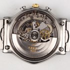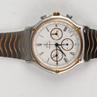 An Ebel Automatic stainless steel and gold gentleman's chronograph bracelet wristwatch with signed jewelled 400 caliber movement, the signed white dial with black Roman hour numerals, three subsidiary dials, date aperture between 4 and 5, and outer tachymeter scale, the case with five screws to bezel and two buttons to side, the case back detailed '64605498' over '1134901', the tapered link bracelet with foldover clasp, case width 3.9cm, together with another similar Ebel Automatic gentleman's chronograph bracelet wristwatch, the tapered link bracelet with snap clasp, width 3.9cm.