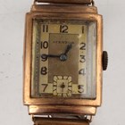 A 9ct gold rectangular cased gentleman's wristwatch, the movement detailed 'Swiss Made 15 jewels', the dial with black Arabic numerals and detailed 'Stentor', London 1945, case width 2.3cm, on a gilt metal fronted expanding bracelet, with case, together with two further gentlemen's wristwatches, comprising Oriosa Super Automatic and Allaine Automatic, a colourless paste set lady's wristwatch and a gilt metal hunting cased Eurastyle pendant watch on a gilt metal neckchain, with case.