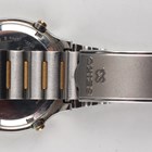 A Seiko Chronograph Quartz Sports 100 steel and gilt metal gentlemen's bracelet wristwatch, the signed white dial with black Roman hour numerals, inner Arabic minutes, four subsidiary dials and moonphase aperture, the tapered link bracelet with foldover clasp, case diameter 3.9cm.