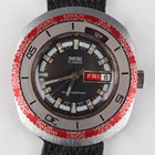 A Smiths World Time Triple Calendar stainless steel backed gentleman's wristwatch, the unsigned jewelled movement detailed '1217-21', the signed black dial with silvered baton hour markers, centre seconds and day and date aperture, the silvered rotating bezel with month aperture and outer red world cities rotating bezel, case width 4cm, on a black rubber strap.
