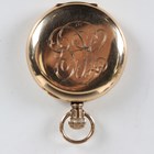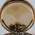 A gold plated keyless wind half hunting cased gentleman's pocket watch with unsigned jewelled movement, the enamelled dial with black Roman hour numerals and subsidiary seconds, case diameter 5cm, together with a Longines Express Monarch gold plated keyless wind open-faced gentleman's pocket watch, the jewelled movement and enamelled dial detailed 'Dingwall', case back monogram engraved, cased diameter 5cm.