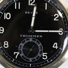 A WWII period Revue Thommen nickel plated keyless wind open-faced gentleman's pocket watch with signed jewelled gilt movement, the signed black dial with luminous Arabic hour numerals and subsidiary seconds, the case back numbered '3299427', case diameter 5.3cm.