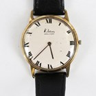 A Kutchinsky Intra-Matic 9ct gold circular cased gentleman's wristwatch with Buren Watch Co jewelled 1280 caliber movement, the signed silvered dial with black Roman hour numerals, import mark London 1966, case diameter 3.3cm, on a black leather strap.