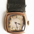 A 9ct gold curved square cased lady's pendant watch with unsigned jewelled movement, the silvered dial with Arabic hour numerals, import mark London 1918, case width 2.3cm.