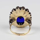 A gold, silver gilt, silver, diamond and blue paste set oval panel shaped ring in an early 19th century inspired design, the blue paste panel applied with a rose cut diamond in a flowerhead shaped motif, otherwise with a border of rose cut diamonds, Spanish marks to exterior of shank, weight 9.2g, ring size approx M1/2.