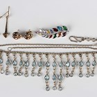 A white gold and varicoloured gem set pendant, designed as a foliate spray, detailed '375', length 4.1cm, a pair of gold drop shaped pendant earrings, detailed '9ct', total weight 5.2g, a pair of earstuds, a Swarovski Crystal necklace and a silver and pale blue gem set fringe necklace, weight 20.4g (one pale blue gem lacking).