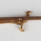 A gold bar brooch, designed as a pheasant on a plain bar, detailed '9ct', weight 3.3g, width 4.5cm, with a case.