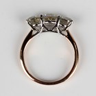 An 18ct two colour gold and diamond three stone ring, claw set with a row of circular cut diamonds, weight 3.8g, total diamond weight approx 2.15ct, ring size approx M, with a Jewellery Report from the World Gemological Institute.