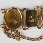 A gold bracelet, the oval links pierced with dragon, phoenix and Asian character motifs, Asian character marks to folding clasp, weight 16.2g, length 17.5cm (broken).