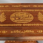 A 20th century Killarney style inlaid walnut fold-over games table, the lid and interior decorated with landscape panels, chessboard and backgammon board, height 72cm, width 78cm, depth 42cm.