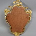 An early 20th century Rococo Revival gilded cast metal wall mirror of shaped cartouche form, 73cm x 52cm.