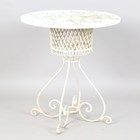 A 20th century wrought iron marble-topped garden table, height 78cm, diameter 70cm.