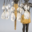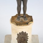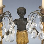 A 19th century gilt and patinated bronze twin-branch figural candelabrum, modelled with a young Nubian male supporting two candle lustres above a white marble pedestal and base, height 35cm.