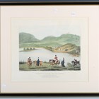 Charles Loraine Smith - 'The Rendezvous of the Smoking Hunt at Braunstone, on Friday the 8th of February, 1822', 'The Rendezvous of the Quor'n Hounds at Grooby Pool, on Tuesday the 16th of April 1822', 'A Leicestershire Burst', 'Loss of the Chaplain', 'Bagging the Fox', and 'The Victory of obtaining the Brush, after what is called a Tickler', six aquatints with later hand-colouring, published by J. Watson 1826, each 34cm x 41cm, all within Hogarth style frames.