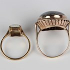 A gold ring, mounted with an oval moss agate, detailed '9K', ring size approx P1/2, and another gold ring, claw set with a cut cornered rectangular opal, detailed '9ct', ring size approx O, total weight 10.3g.