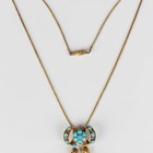 A Victorian gold and turquoise necklace, circa 1860, designed as a tied ribbon bow with a central turquoise set cluster, with two graduated drops, on a snap clasp, unmarked, weight 9.6g, length 42cm.
