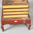 A modern wooden painted chest, modelled as a stack of books, the hinged lid painted with a bust of a North American Indian chief, raised on shaped legs, height 55cm, width 56cm, depth 44cm.