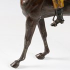An early 20th century Continental cold painted spelter equestrian group depicting a jockey on horseback, possibly Fred Archer, height 28cm, width 30cm.