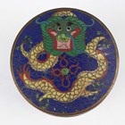 A Korean wrought iron mounted celadon glazed stoneware storage jar, 18th/19th century, of shouldered ovoid form with hinged lid, hanging chain and hook, total height 35.5cm, together with a celadon glazed stoneware pedestal cup with fluted bowl, height 8.8cm, a Chinese cloisonné cylindrical box and cover, height 7.7cm, and a brass cylindrical box and cover with silvered and copper overlaid decoration, height 9.1cm.