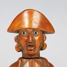A late 18th/early 19th century carved boxwood novelty figural snuff box, modelled in the form of Horatio Nelson, detailed with bicorn hat and cut steel buttons, the interior lined in tortoiseshell, length 11cm (lacking lid and one foot).