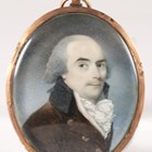 Circle of George Engleheart - a late 18th/early 19th century half-length portrait miniature of a gentleman wearing a brown coat and white stock, watercolour on ivory, 6.2cm x 5cm, within a gilt metal frame, the reverse with a glazed woven hair panel. Note: a non-transferrable ivory exemption certificate has been granted for the sale of this item.