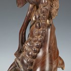 An African carved hardwood abstract figure group, probably Shona, inset with shells, height 60cm.