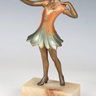 An Art Deco cold painted cast spelter figure of a dancer, raised on an alabaster pedestal, height 24cm.