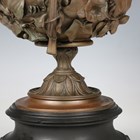 A late 19th century Continental brown patinated cast bronze centrepiece bowl, the body cast with ivy and convolvulus, raised on a slate pedestal, height 29cm, width 30cm.