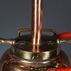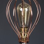 An early 20th century copper fire extinguisher converted to a table/floor lamp, with industrial style wire cage shade, height 81cm.
