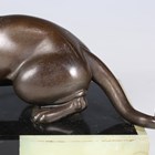 Irénée Rochard - an Art Deco patinated cast spelter model group of two panthers with a coppered ball, the black slate and green onyx plinth bearing incised signature, width 52cm.
