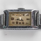A Medana 9ct gold cased lady's wristwatch on an expanding bracelet, detailed '9ct', case width 2cm, total weight 12.5g, with a case, together with a rectangular cased lady's wristwatch, the movement detailed 'Swiss made', fitted to a chrome plated metal bracelet.
