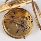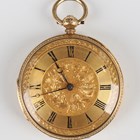 An 18ct gold cased keywind open-faced fob watch, the gilt movement detailed 'C.S.S.A.L. London 39556', the engraved gilt dial with black Roman numerals, the case with engraved decoration, London 1868, case diameter 3.7cm, total weight 49g.