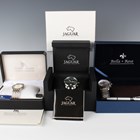 A Jaguar Professional stainless steel dual time gentleman's bracelet wristwatch, the signed green dial with two subsidiary dials and date aperture, the tapered link bracelet with foldover clasp, case diameter 4.1cm, with international guarantee and user guide, case and box, together with a Bella & Rose steel backed gentleman's bracelet watch, detailed 'Made in China', with wallet, ballpoint pen and case, and a Précieuse Montre Quartz gentleman's bracelet watch, with guarantee card and case.