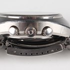 An Omega Speedmaster Automatic Chronograph stainless steel gentleman's bracelet wristwatch, Ref. 176.0012, circa 1980, the signed and jewelled 1045 caliber movement numbered '41921313', the signed black dial with white baton hour markers, day and date apertures, three subsidiary dials and outer tachymeter scale, the case with two buttons to side, the signed case back interior numbered '176.0012', the case back with Seamaster emblem, the tapered link bracelet with signed foldover clasp, case width 4.2cm.