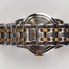 A Tissot Le Locle 18ct gold circular cased gentleman's wristwatch, Ref. 6667330, with quartz movement, the signed dial with gilt baton hour markers and date aperture, the signed case back detailed '18K 750', case diameter 3.3cm, on a leather strap, boxed, with booklets, instruction manual and international warranty card, dated '16/08/04', together with a Tissot Ballade steel and gilt lady's bracelet wristwatch with quartz movement.