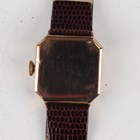 A 9ct gold cut cornered square cased lady's wristwatch, the unsigned silvered dial with black Roman numerals, import mark London 1919, case width 2.8cm, together with a Visible silver circular cased lady's wristwatch, the bezel with pale blue and white enamelled decoration, with gilt Arabic numerals, import mark London 1913, case diameter 2.7cm, and a Rodana steel backed lady's wristwatch, case diameter 2.4cm.