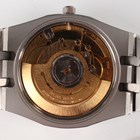 A Bulova Automatic stainless steel cased gentleman's bracelet wristwatch, circa 1979, the signed and jewelled ETA 2892 caliber movement numbered '1432.10', the signed textured silvered dial with baton hour markers and date aperture, the case with octagonal bezel, the signed case back numbered '442010' above '6-158168', the case back interior detailed 'N9', the tapered link bracelet with foldover clasp, case width 3.4cm.