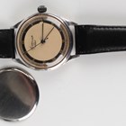 A Hamilton 23 Jewels stainless steel circular cased gentleman's wristwatch, the signed and jewelled movement numbered '1779558', the signed cream dial with Roman hour numerals, the case with choice of steel or glazed back, case diameter 4cm, on a leather strap.