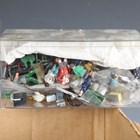 A collection of Lionel gauge O railway accessories, including girder lifting bridge, No. 156 illuminated platform, No. 157 rotating radar antenna and tinplate station, some boxed (playwear and faults).
