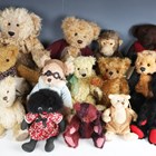 A collection of teddy bears and other soft toys, including Robin Rive golly, Isabelle Collection limited edition bear LiLi 57/200 and Stephanie Teddies mohair teddy bear.