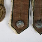A collection of late 19th century bullion and embroidered military titles, including a group of shoulder titles with buttons for the 4th Royal Irish Dragoon Guards.