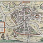 Georg Braun and Franz Hogenberg - 'Brightstowe' (Map of Bristol), engraving with later hand-colouring, published circa 1581, 36cm x 45cm, within a Hogarth style frame.